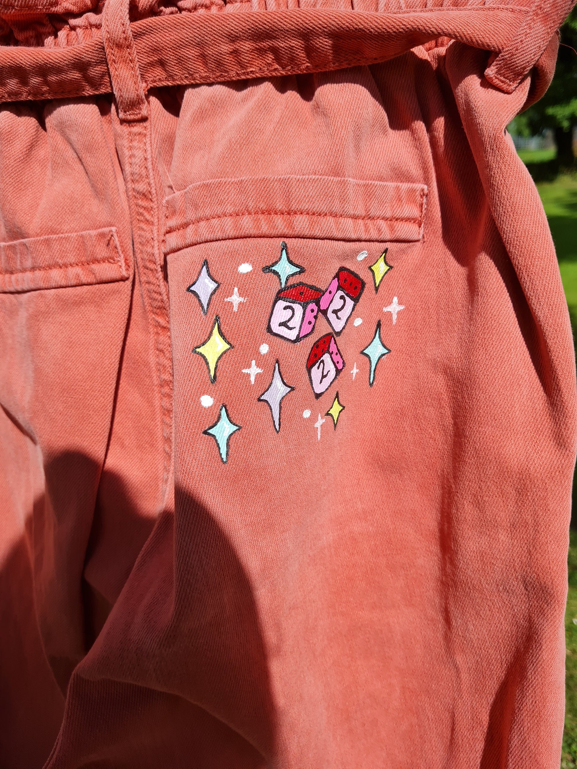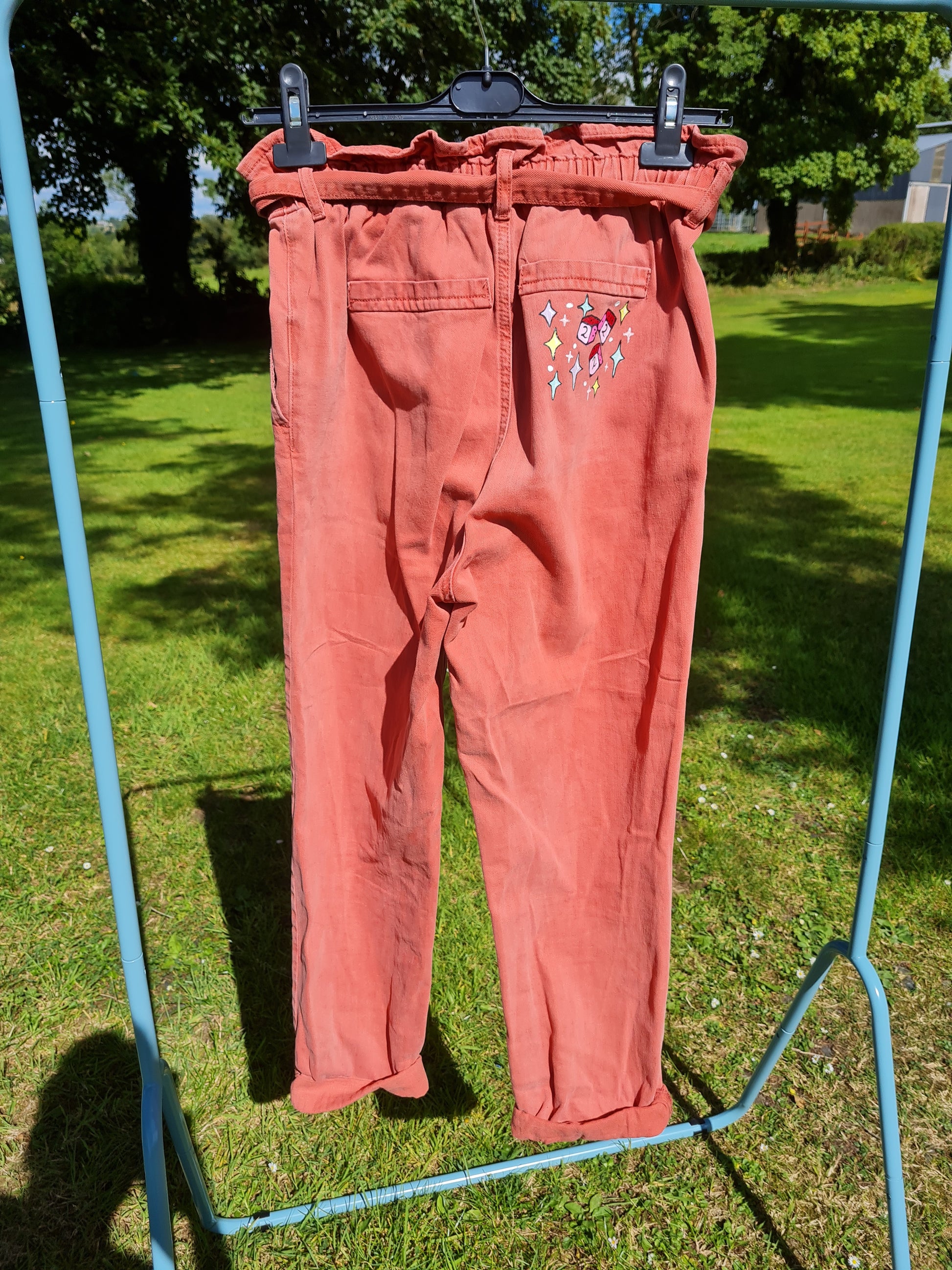 Paper bag waist, rusty jeans with angel number die on the back!