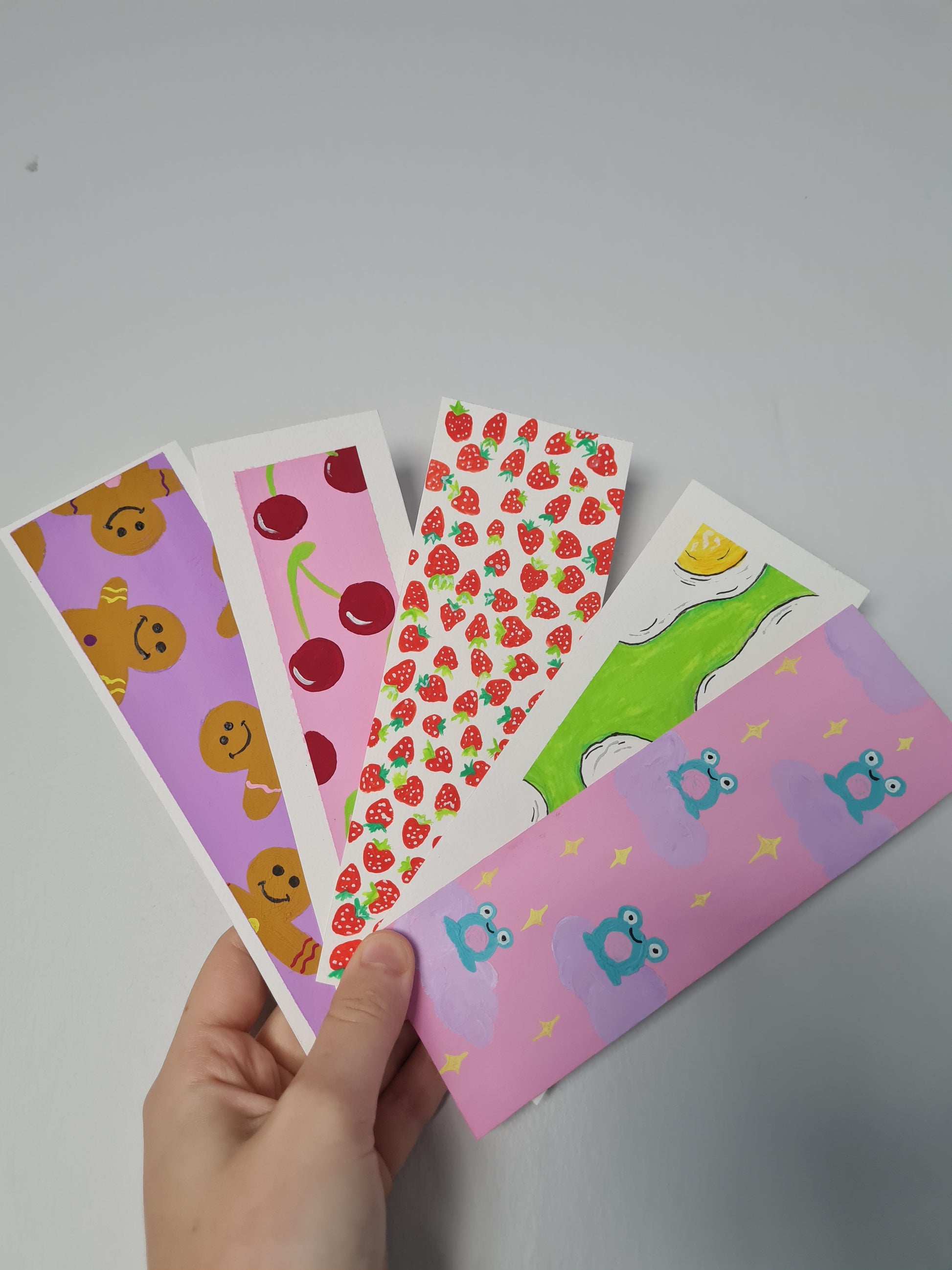 Handpainted bookmark, painted with gouache paint. Roughly 6x18cm